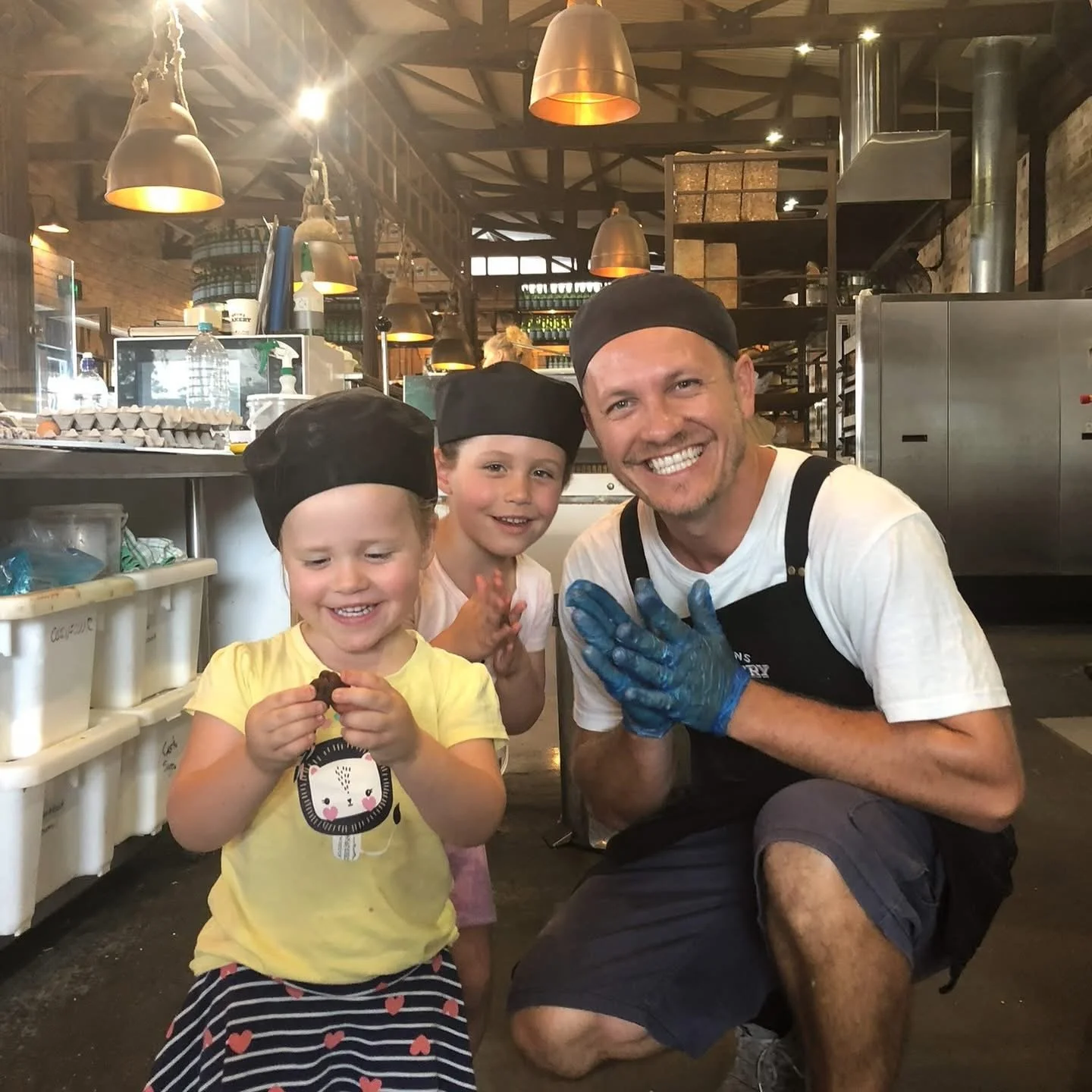 At the heart of Bruns Bakery is a true family affair. Kurt and Mel, along with their two young children Tiger and Indy, have had the bakery a part of their lives for many decades. Kurt, a true Brunswick Heads local, began his apprenticeship at the same location in the year 2000, leaving school early to immerse himself in the trade. Many decades later during the 2016 renovations of the shop when their kids were only babies to now when you’ll find both girls eagerly helping behind the scenes during school holidays, the bakery has always been a family journey. Over the years, Kurt has played a key role in shaping Bruns Bakery into the community hub it is today. Together with Mel’s creative flair, the couple makes an unstoppable team. Mel brings fresh ideas, organizing community events and staying ahead of trends to keep the bakery vibrant and connected with customers through social media. Kurt and Mel are proud to contribute to their local community and are excited to continue serving it for many years to come.